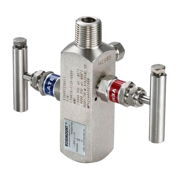PRESSURE MANIFOLD, SERIES 0306, THREADED, TWO VALVE, 316 SST/316L SST, 1/214 FEMALE NPT