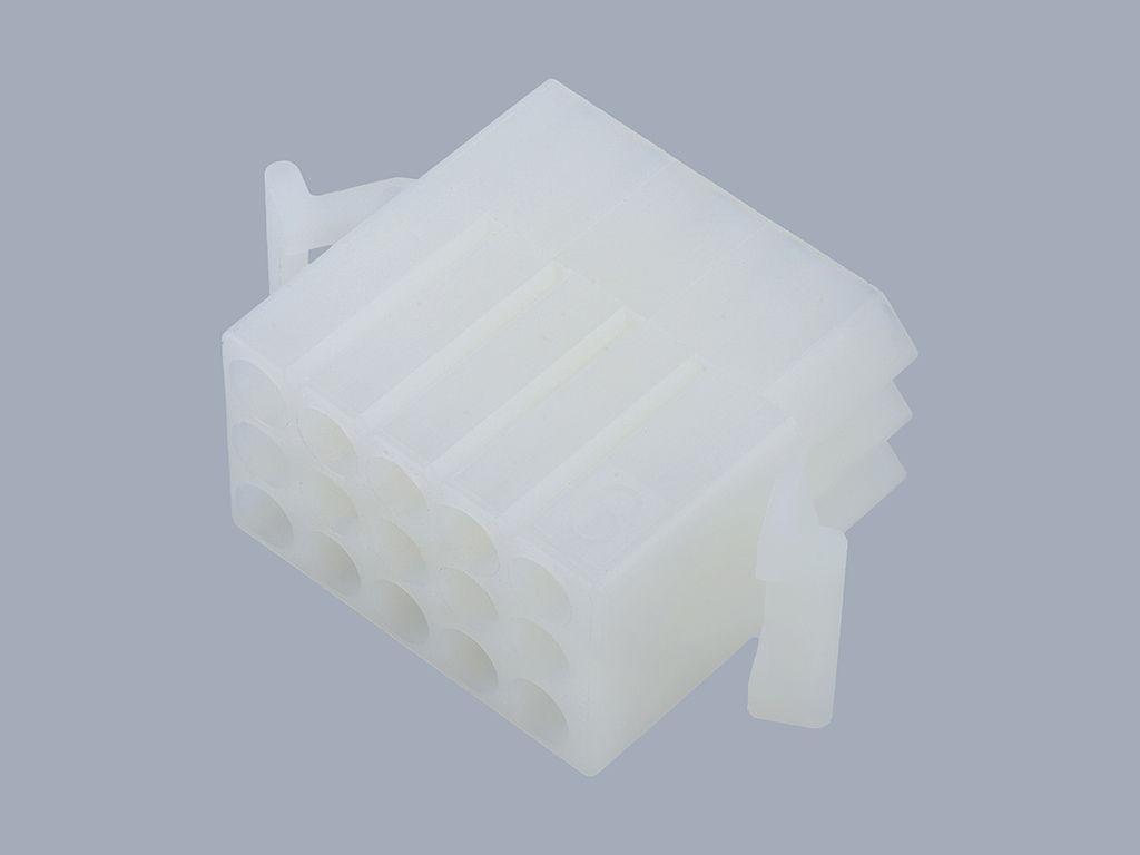 2.36mm Diameter Standard .093" Pin and Socket Receptacle Housing, 15 Circuits, 3 Rows, with Pre-Bent Mounting Ears, without Lock Ramps