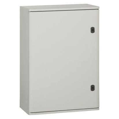 720 x 510 x 250 mm polyester frame. IP 66 according to IEC EN 60529 and IK 10 according to IEC EN 62262 EN 50102, Class II1. Glass-fiber reinforced polyester, self-extinguishing at 960 C according to IEC EN 60695211. Suitable for corrosive environments. Reversible door, 180 opening with captive hinges. Double-bar lock. Direct attachment of equipment to the bottom of the cabinet.