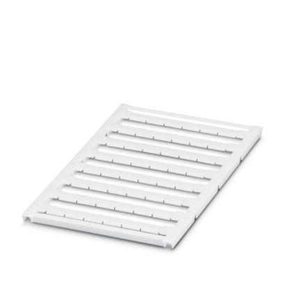 Marker for terminal blocks, Sheet, white, unlabeled, can be labeled with: BLUEMARK ID COLOR, BLUEMARK ID, BLUEMARK CLED, PLOTMARK, CMS-P1-PLOTTER, mounting type: snapped, for terminal block width: 10.2 mm, lettering field size: 9.6 x 5.1 mm, Number of individual labels: 48