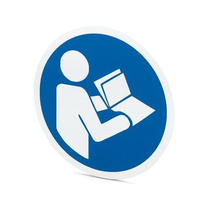 Mandatory sign, Sheet, blue/white, labeled: Follow the instructions, mounting type: adhesive, diameter: 200 mm, lettering field size: Ø 200 mm, Number of individual labels: 1