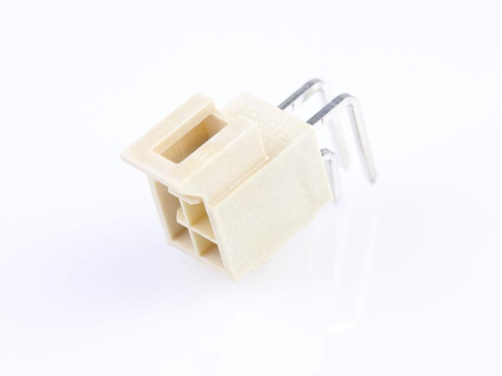Nano-Fit Right-Angle Header, Through Hole, 2.50mm Pitch, Dual Row, 4 Circuits, 0.76µm Gold (Au) Plating, Natural, Glow-Wire Capable, Tray