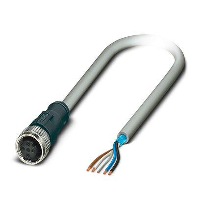 Sensor/actuator cable, 4-position, PVC, gray, shielded, free cable end, on Socket straight M12, coding: A, cable length: 10 m, Foil shielding plus drain wire