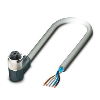Sensor/actuator cable, 4-position, PVC, gray, shielded (Plastic-coated aluminum foil connection with a drain wire), free cable end, on Socket angled M12, coding: A, cable length: 20 m, Foil shielding plus drain wire