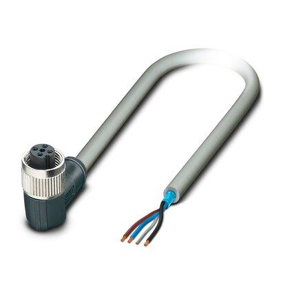 Sensor/actuator cable, 4-position, shielded, free cable end, on Socket angled M12, coding: A, cable length: 5 m, Foil shielding plus drain wire