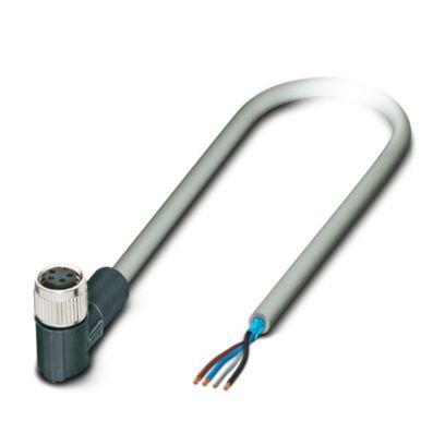 Sensor/actuator cable, 4-position, PVC, gray, shielded (Plastic-coated aluminum foil connection with a drain wire), free cable end, on Socket angled M8, coding: A, cable length: 5 m, Foil shielding plus drain wire