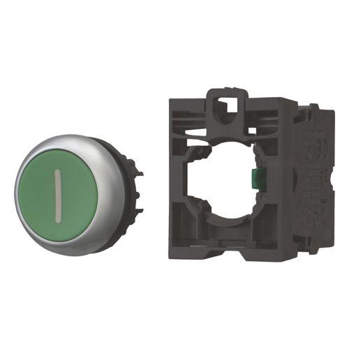 Eaton Moeller series M22 Pushbutton, RMQ-Titan, flush, momentary, 1 NO, green, inscribed, Blister pack for hanging