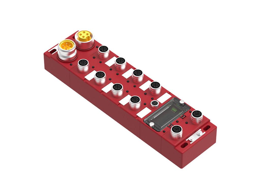 Brad EtherNet/IP CIP Safety HarshIO Modules, Classic 60.00mm, IP67, 8 Ports M12, 12 PNP Safety Inputs, 4 Sourcing Safety Outputs, Window Memory Key, 5-Pole Power