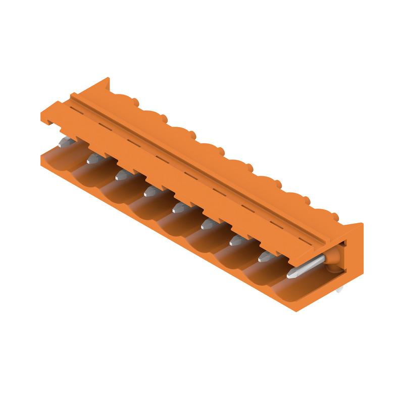 PCB plug-in connector, male header, open side, THT solder connection, 5.08 mm, Number of poles: 9, 90°, Solder pin length (l): 3.2 mm, tinned, orange, Box