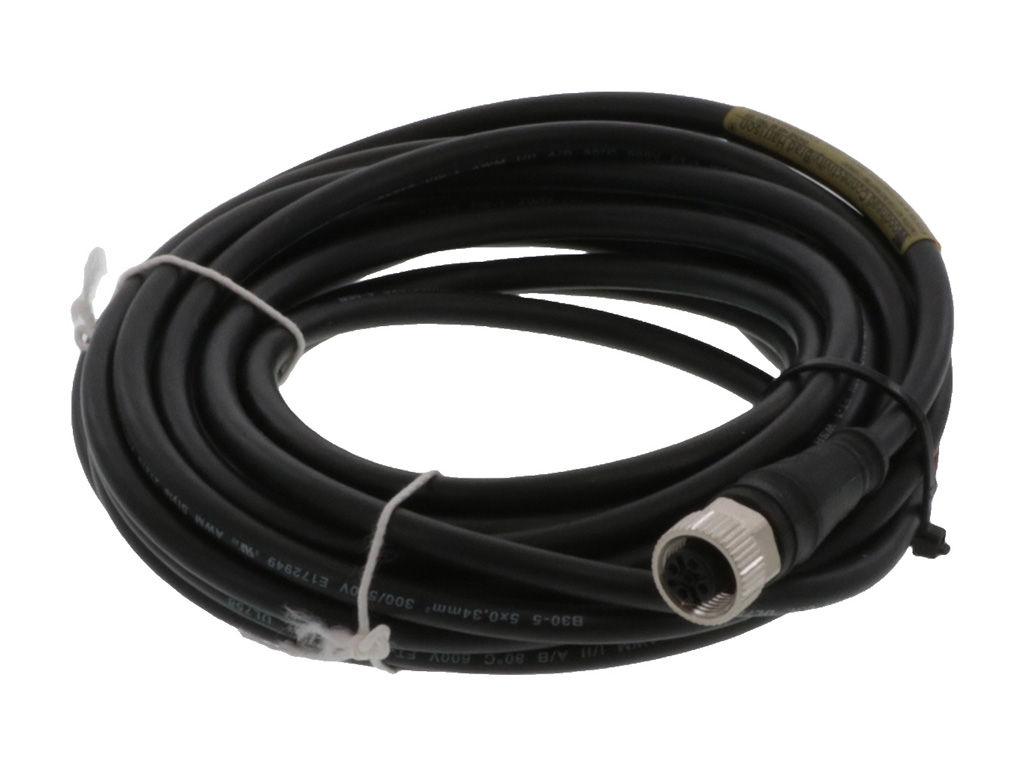 Micro-Change (M12) Single-Ended Cordset with Knurled Hexnut, 5 Poles, Female (Straight) to Pigtail, 22 AWG, Black TPU WSOR Cable, 5.0m (16.40') Length