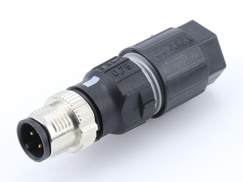 Micro-Change (M12) Field Attachable Connector, 4 Poles, Straight, Male, Unshielded, IDC Termination, Cable Diameter 4.00-8.00mm