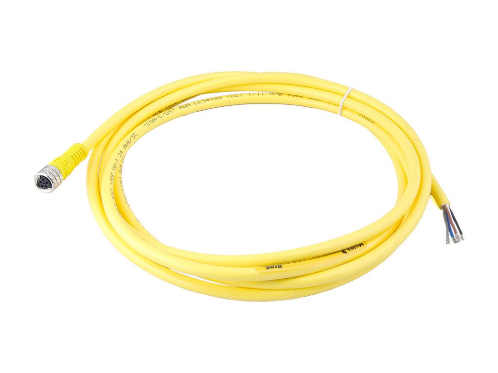 Nano-Change (M8) Single-Ended Cordset, 5 Poles, Female (Straight) to Pigtail, 24 AWG, Yellow PVC Cable, 2.0m (6.56') Length