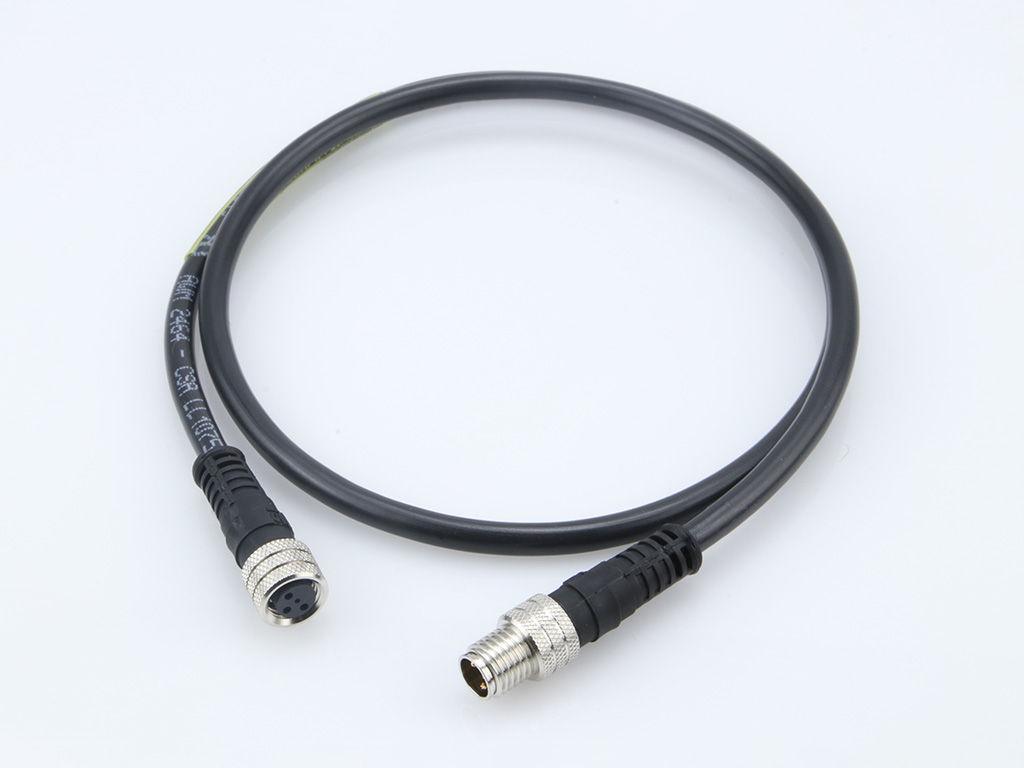 Nano-Change (M8) Double-Ended Cordset with Knurled Hexnut, 3 Poles, Male (Straight) to Female (90°), 24 AWG, Black PUR LSOH Cable, 2.0m (6.56') Length