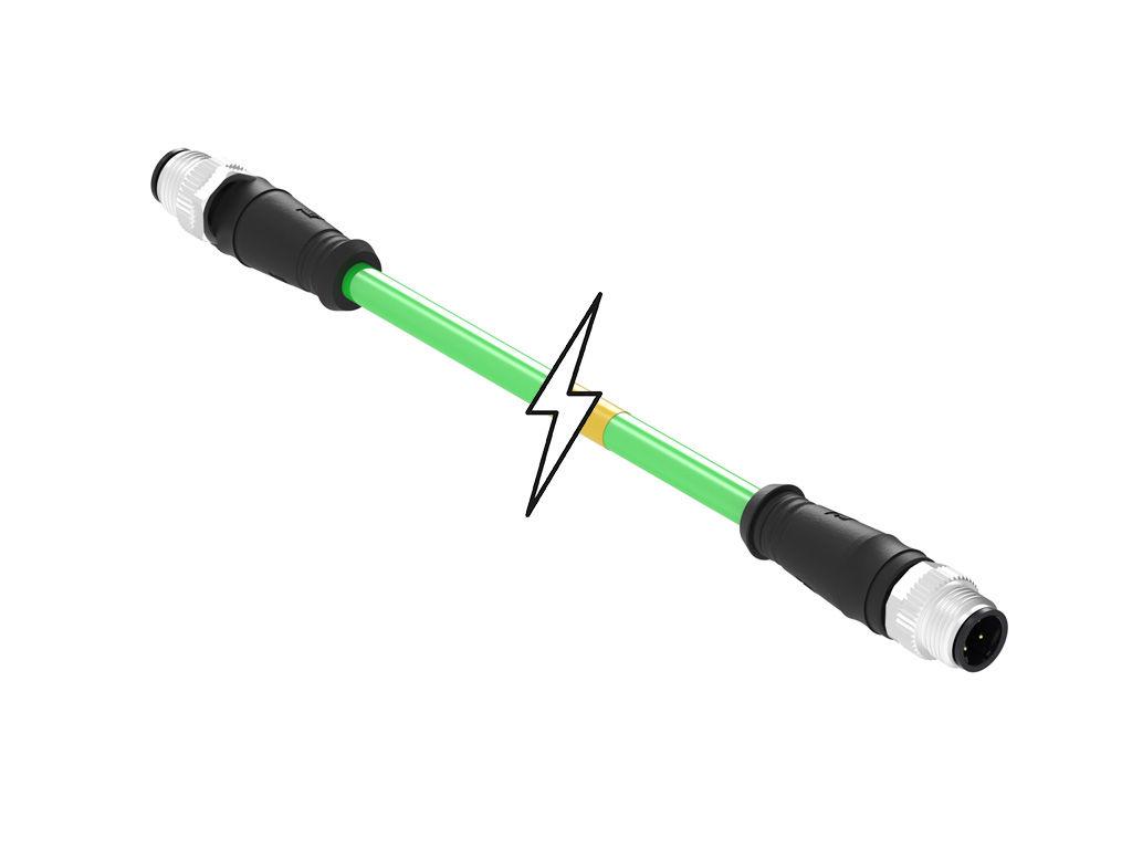 Micro-Change (M12) Double-Ended Cordset, 4 Poles, Male (Straight) to Male (Straight), Green TPU WSOR Cable, 22 AWG, 5.0m (16.40') Length