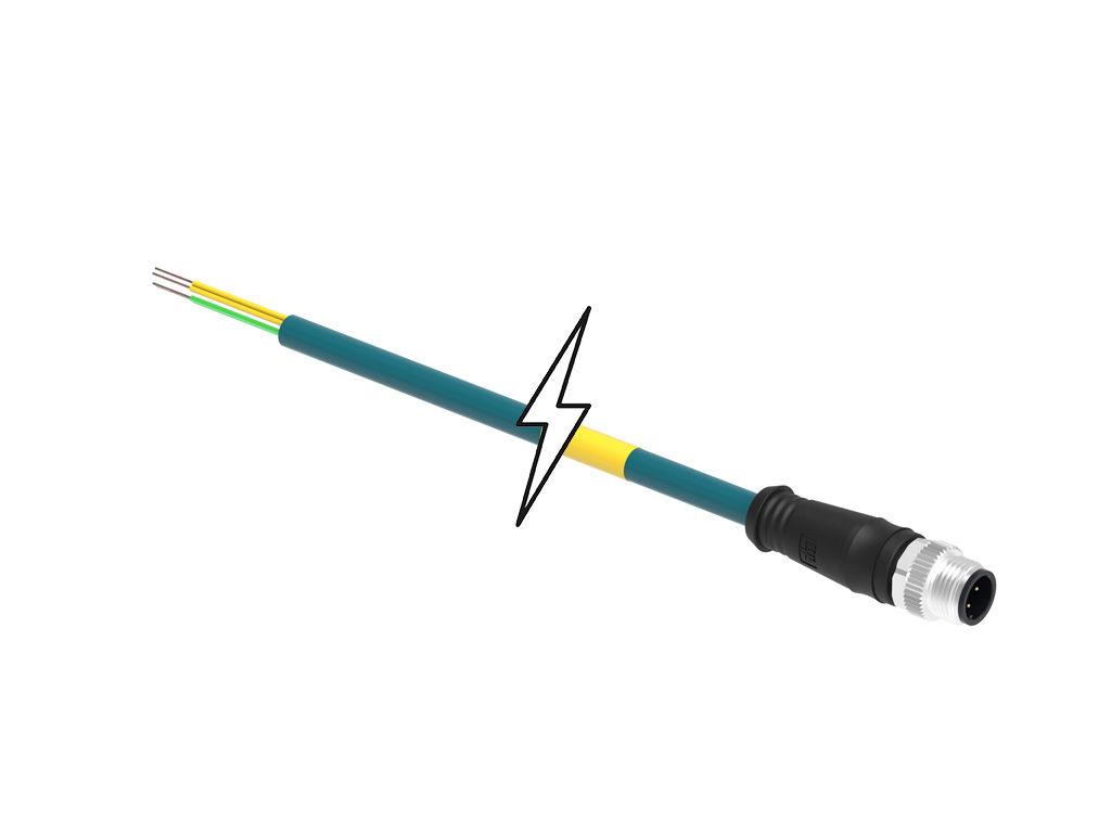 Micro-Change (M12) Single-Ended Cordset, 4 Poles, Male (Straight) to Pigtail, 24 AWG, Teal PUR WSOR Cable, 10.0m (32.81') Length