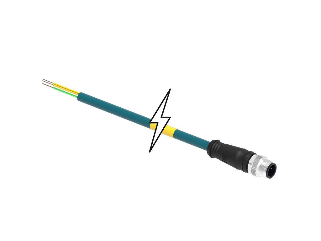 Micro-Change (M12) Single-Ended Cordset, 4 Poles, Male (Straight) to Pigtail, 24 AWG, Teal PUR WSOR Cable, 20.0m (65.62') Length