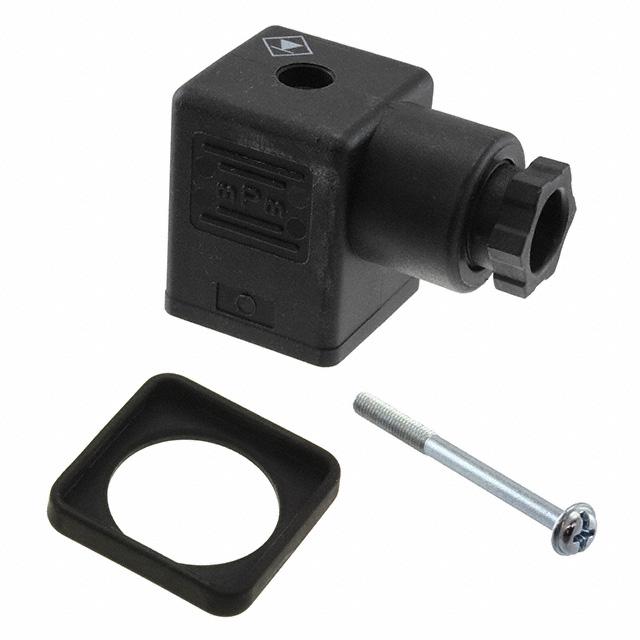mPm DIN Valve Connector, Form A-18mm, PG9 Internal Threads, 2 Pole Plus Ground with R0 Circuit, 230V, VDR Indicator, Black, Nitrile Gasket