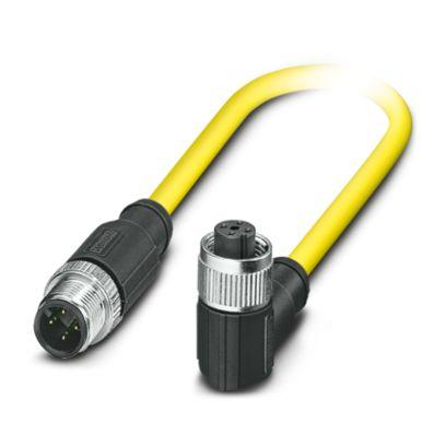 Sensor/actuator cable, 4-position, PVC, yellow, shielded (Tinned copper braided shield), Plug straight M12, coding: A, on Socket angled M12, coding: A, cable length: 0.5 m