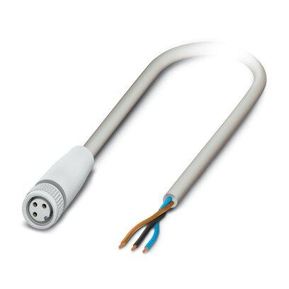 Sensor/actuator cable, 3-position, PP-EPDM halogen-free, gray RAL 7035, free cable end, on Socket straight M8, cable length: 10 m, Hygienic design, with plastic knurl