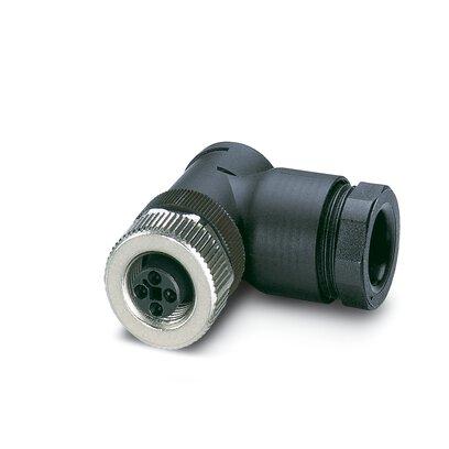 Power connector, 4-position, unshielded, Socket angled M12, T, Screw connection, knurl material: Zinc die-cast, nickel-plated, cable gland Pg11, external cable diameter 8 mm ... 10 mm, For direct current up to 12 A/63 V
