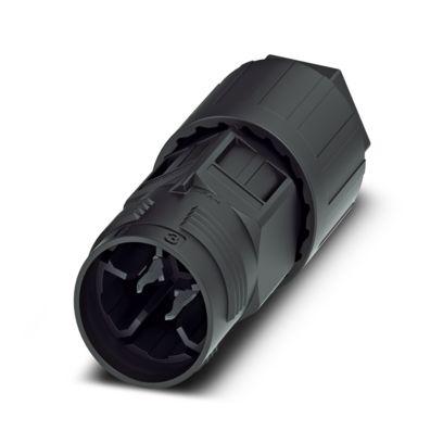 QUICKON cable connector, with a QUICKON nut, black, 4+PE-pos., 2.5 mm2 ... 6.0 mm2/690 V/40 A, for cable diameter of 9 mm ... 14 mm.