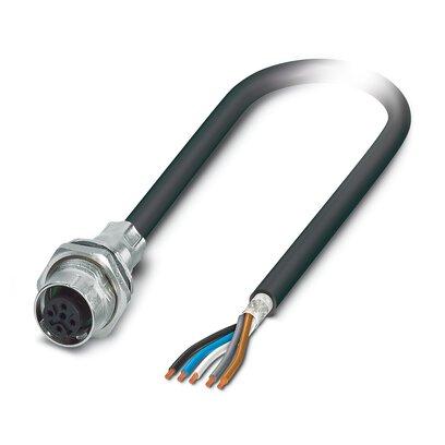 Device connector, rear mounting, Universal, 5-position, PUR halogen-free, black-gray RAL 7021, shielded, Flush-type female connector, straight, M12-SPEEDCON, coding: A , on free cable end, Rear mounting, M16 x 1.5, Cable connection, cable length: 2 m, 0.34 mm2, PUR halogen-free black, Alternative product in accordance with RoHS II without Exemption 6c (Pb <0.1%) item no.: 1239248