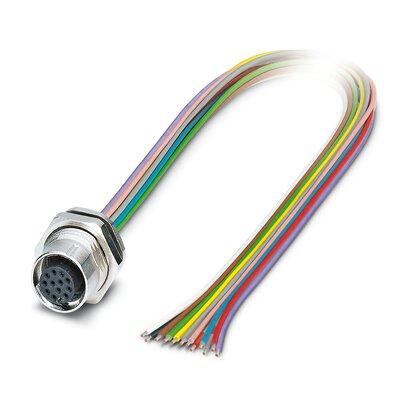 Device connector, rear mounting, Universal, 12-position, Flush-type female connector, straight, M12-Standard, coding: A , on free cable end, Rear mounting, M16 x 1.5, Individual wires, cable length: 0.5 m, 0.14 mm2, TPE litz wire, Alternative product in accordance with RoHS II without Exemption 6c (Pb <0.1%) item no.: 1239282