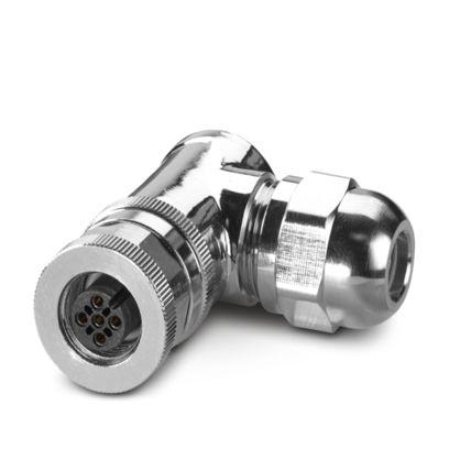 Connector, Universal, 5-position, shielded, Socket angled M12, coding: A, Screw connection, knurl material: Brass, nickel-plated, cable gland Pg9, external cable diameter 6 mm ... 8 mm