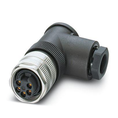Connector, Universal, 5-position, Socket angled 7/8"-16UNF, coding: A, Screw connection, knurl material: Zinc die-cast, nickel-plated, cable gland Pg11, external cable diameter 8 mm ... 10 mm