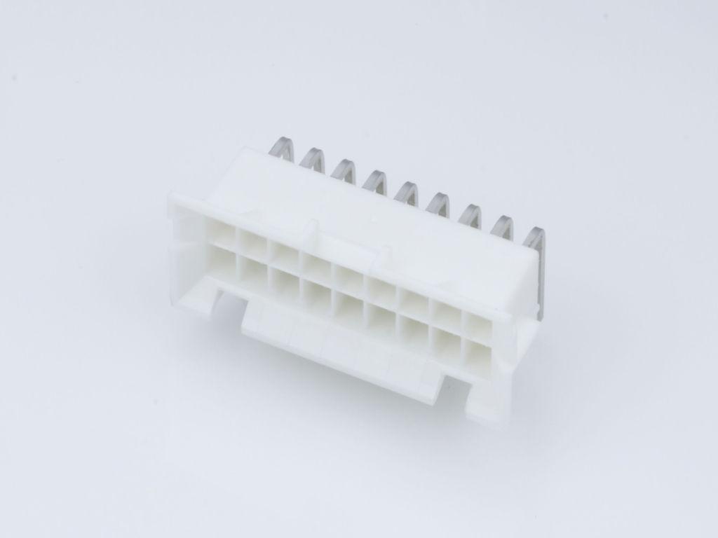 Mini-Fit BMI Header, Dual Row, Right-Angle, with Snap-in Plastic Peg PCB Lock, 18 Circuits, PA Polyamide Nylon 6/6, UL 94V-0, with Tin (Sn) Plating