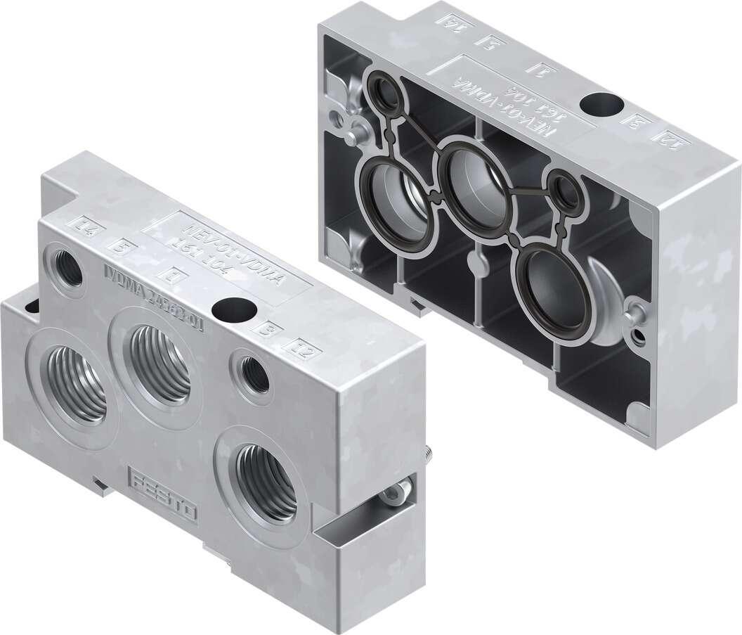 Festo NEV-01-VDMA manifold end base, 3 stations, G 12, G 18 thread, Aluminum
