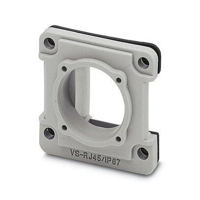 RJ45 panel mounting frame, IP67, for modular socket inserts (Keystone), for square panel cutout, with grommet, without mounting screws, color: gray