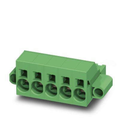 PCB connector, nominal cross section: 16 mm2, color: green, nominal current: 76 A, rated voltage (III/2): 1000 V, contact surface: Silver, contact connection type: Socket, number of potentials: 5, number of rows: 1, number of positions: 5, number of connections: 5, product range: SPC 16/..-STF, pitch: 10.16 mm, connection method: Push-in spring connection, conductor/PCB connection direction: 0 °, locking clip: - without locking clip, plug-in system: COMBICON PC 16, locking: Screw locking mechanism, mounting: Screw flange, type of packaging: packed in cardboard