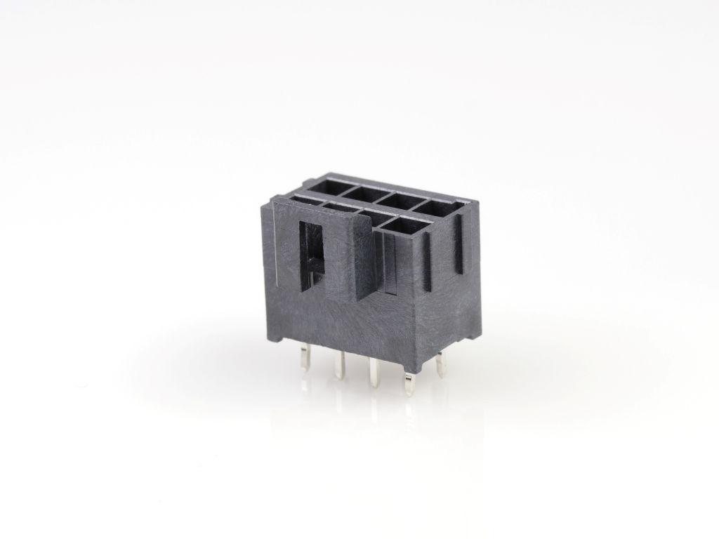 Ultra-Fit Vertical Header, 3.50mm Pitch, Dual Row, 8 Circuits, with Kinked Pins, 0.38µm Gold (Au) Plating, Black, Glow-Wire Capable