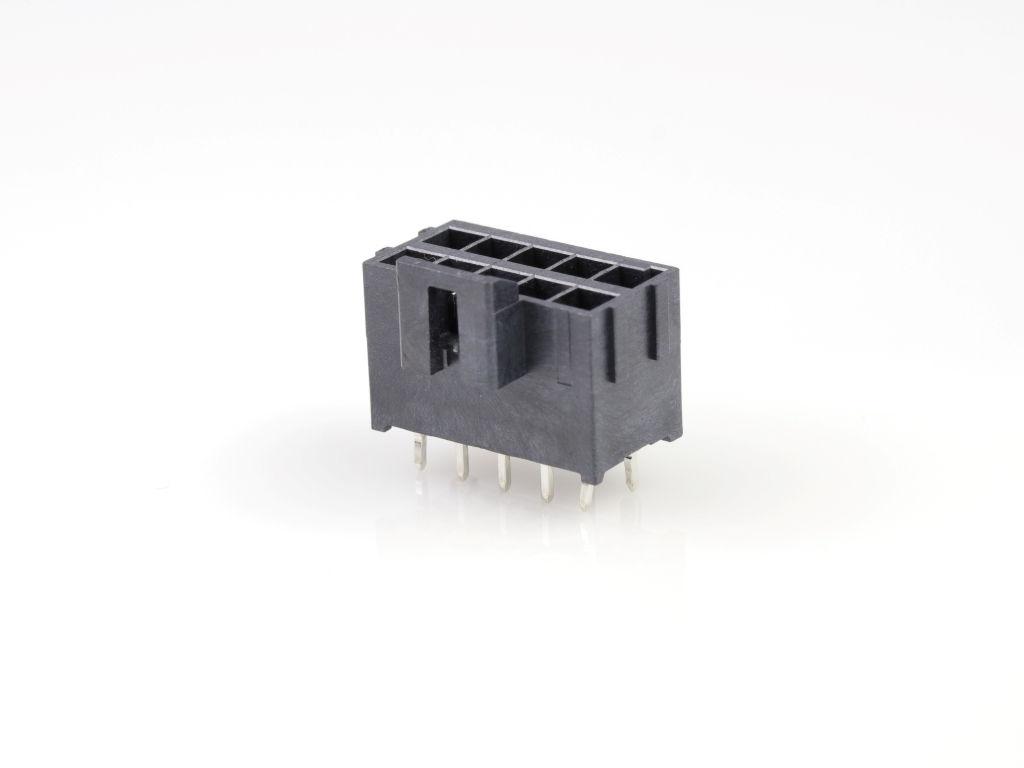 Ultra-Fit Vertical Header, 3.50mm Pitch, Dual Row, 10 Circuits, with Kinked Pins, 0.38µm Gold (Au) Plating, Black, Glow-Wire Capable