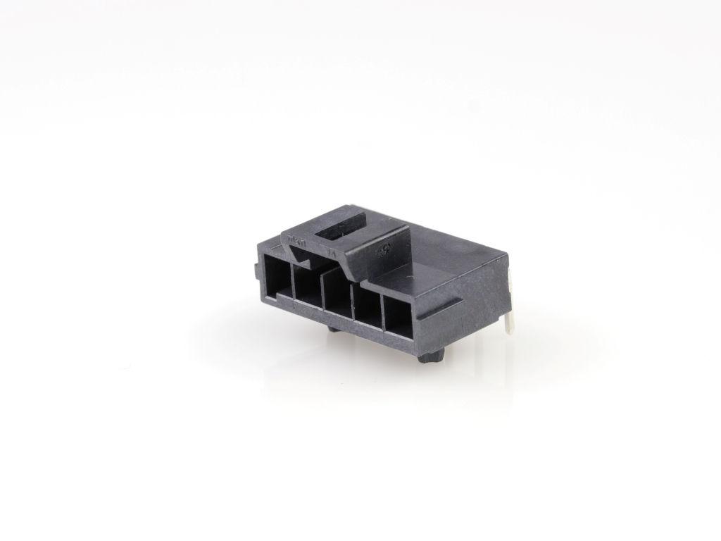 Ultra-Fit Right-Angle Header with Solder Nail, 3.50mm Pitch, Single Row, 5 Circuits, 0.76µm Gold (Au) Plating, Black, Glow-Wire Capable