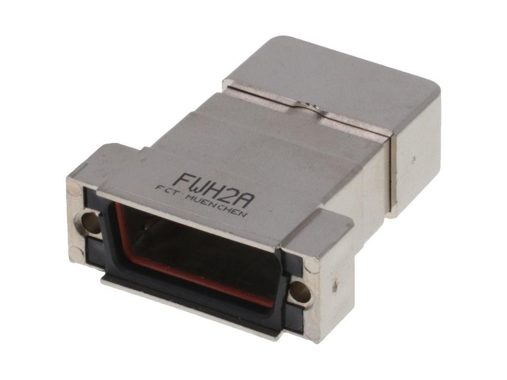 FCT Plastic Backshell for D-Sub Connector, Shielded, Shell Size 2, Straight Cable Outlet, IP67 Waterproof, Large Inner Chamber