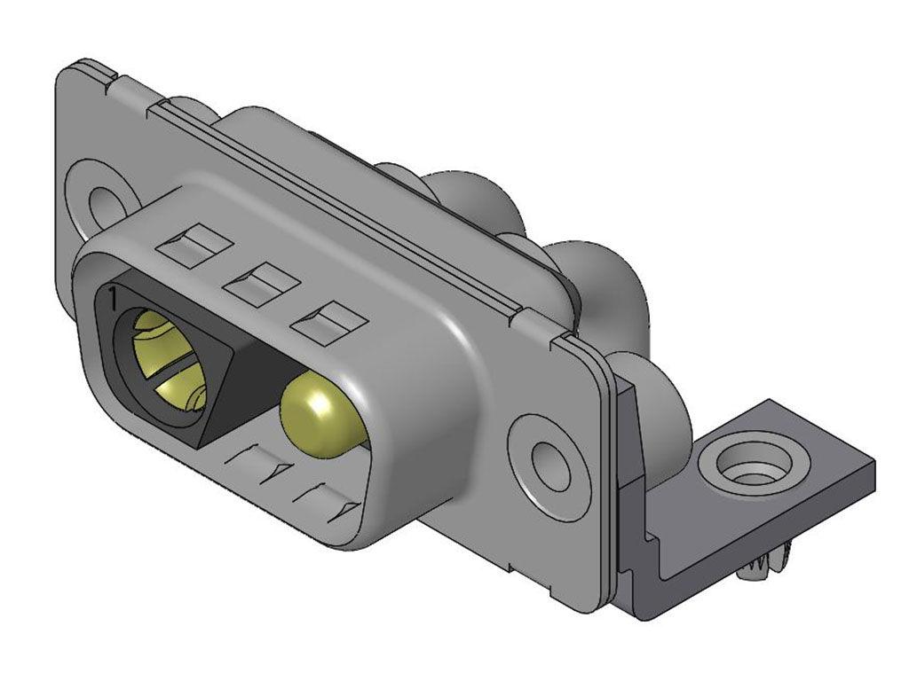 FCT Mixed Layout D-Sub Connector, Male, Right-Angle, PCB Through Hole, Gold Plating, Tin-plated Shell with Dimples, Polarized, Riveted Metal Bracket and Clinch Nut, 2 Circuits, Black Insulator