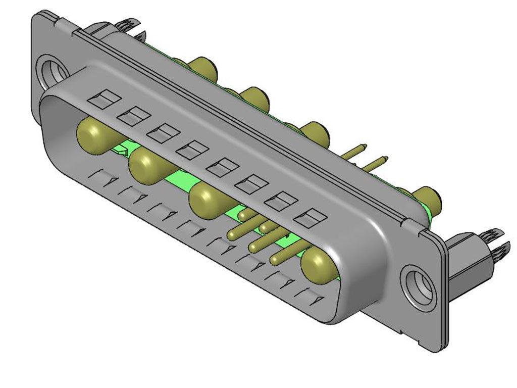 FCT Mixed Layout D-Sub Connector, Male, Straight, PCB Through Hole, Gold Plating, Tin-plated Shell with Dimples, 9 Circuits, Green Insulator
