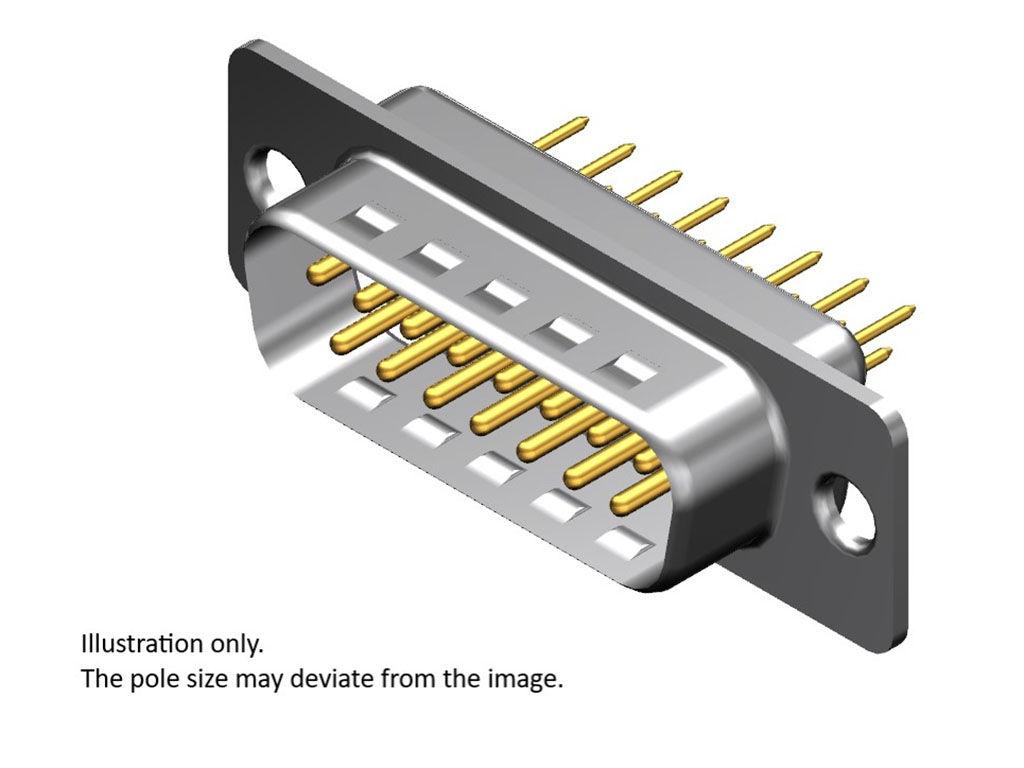 FCT Standard-Density D-Sub Connector, Male, Straight, PCB Through Hole, 10.30mm Tail Length, Gold Plating, 200 Mating Cycles, 25 Circuits, White Insulator