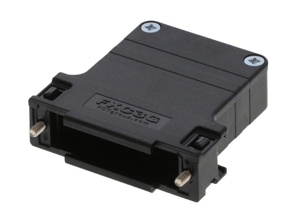 FCT Plastic Backshell for D-Sub Connector, Black, Shell Size 3, Straight Cable Outlet, Large Inner Chamber, with 4-40 UNC Locking Screws, Individually Packed