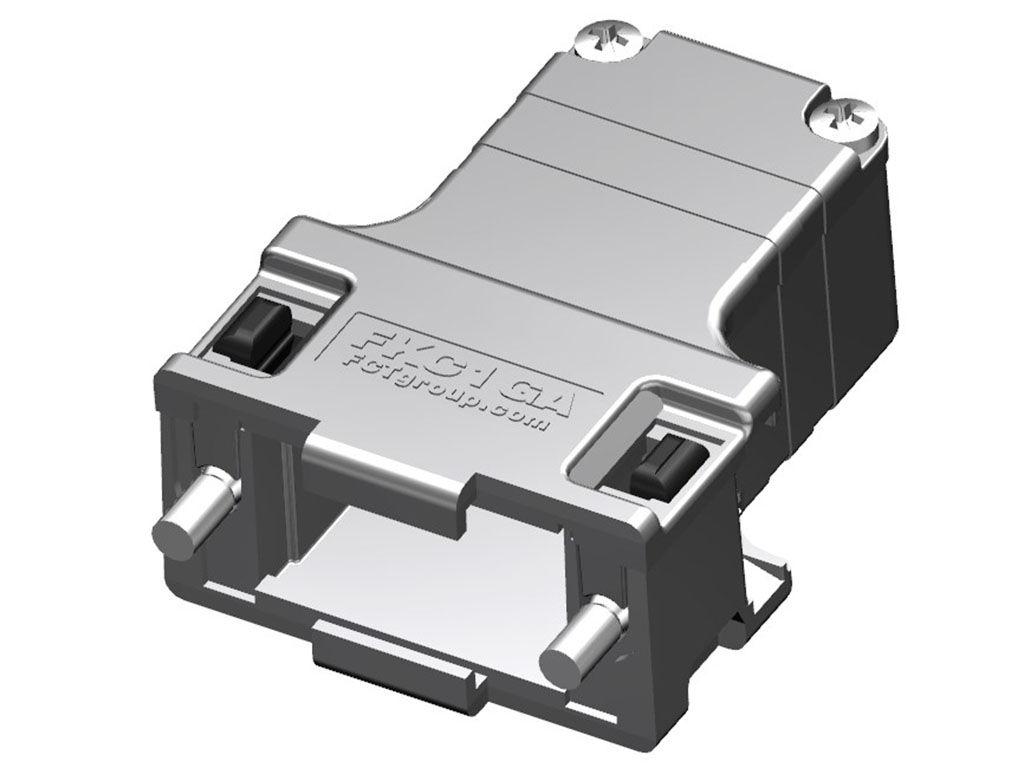 FCT Plastic Backshell for D-Sub Connector, Shielded, Shell Size 1, Straight Cable Outlet, Large Inner Chamber, with 4-40 UNC Locking Screws