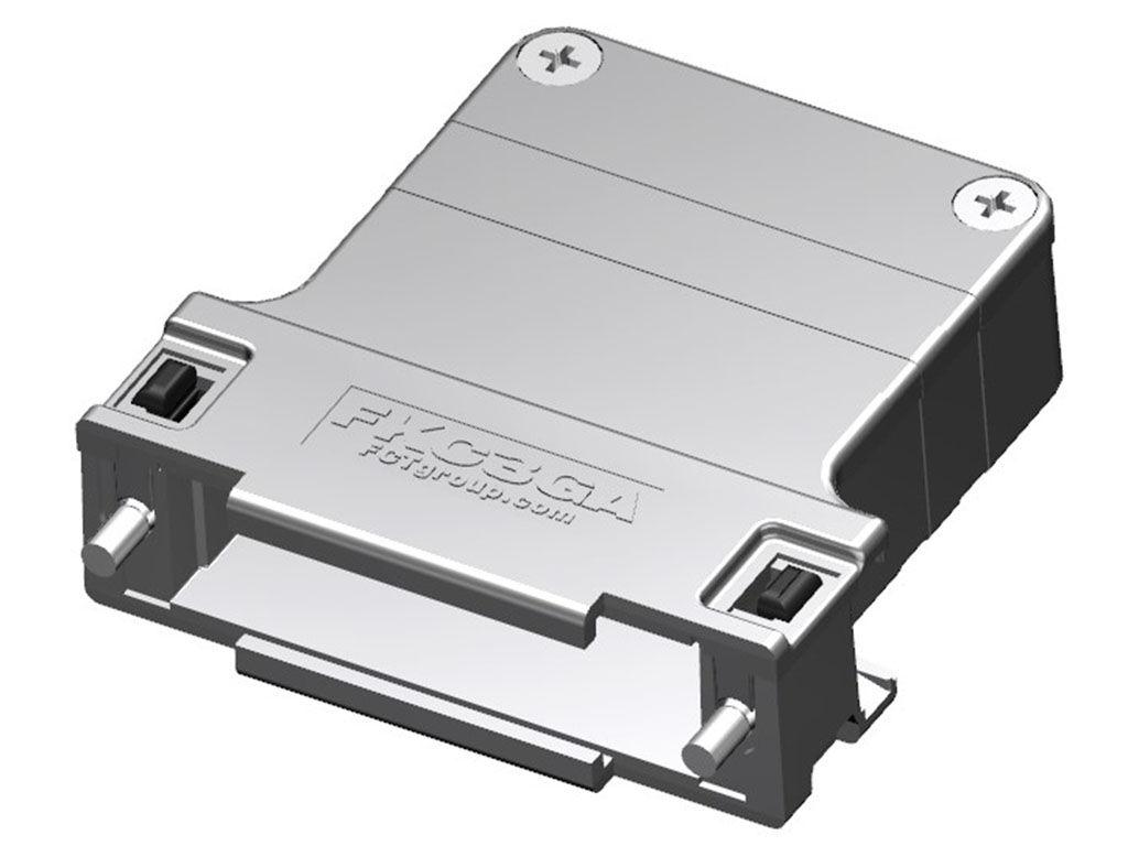 FCT Plastic Backshell for D-Sub Connector, Shielded, Shell Size 3, Straight Cable Outlet, Large Inner Chamber, with 4-40 UNC Locking Screws