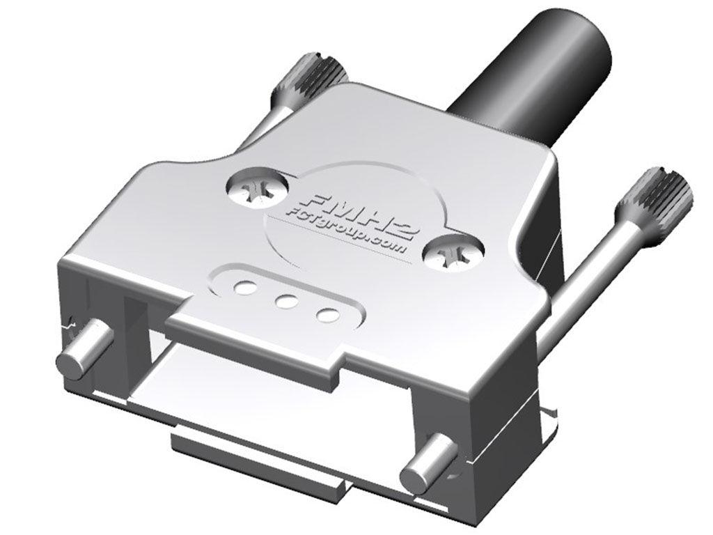 FCT Metal Backshell for D-Sub Connector, Shell Size 2, Straight Cable Outlet, with Rubber Bushing, 4-40 UNC Knurled Thumb Screws, and 4-40 UNC Locking Screws
