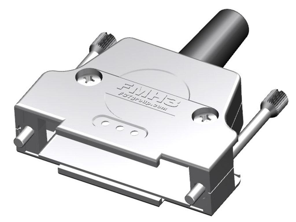 FCT Metal Backshell for D-Sub Connector, Shell Size 3, Straight Cable Outlet, with Rubber Bushing, 4-40 UNC Knurled Thumb Screws, and 4-40 UNC Locking Screws