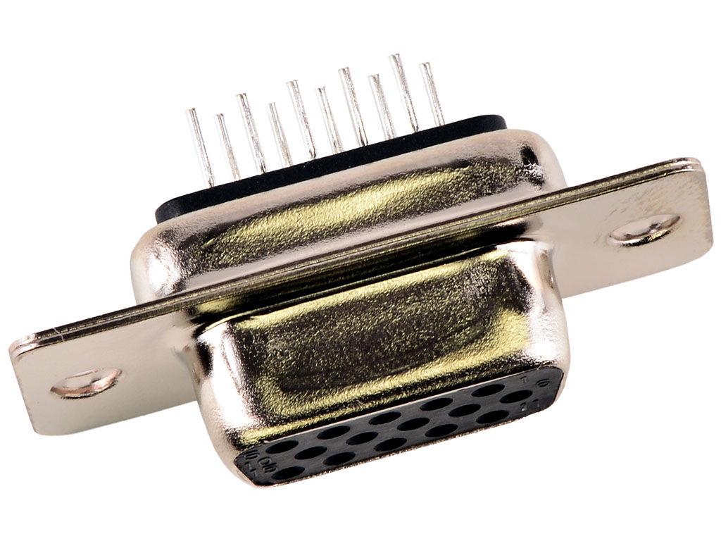 FCT High-Density D-Sub Connector, Female, Straight, PCB Through Hole, Gold Plating, 15 Circuits