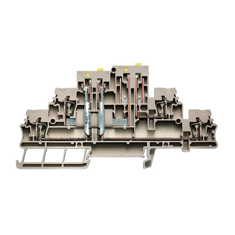 Test-disconnect terminal block, Tension Clamp, 4 Poles, 400V, 16A, 0.5 ... 4mm², Dark Beige