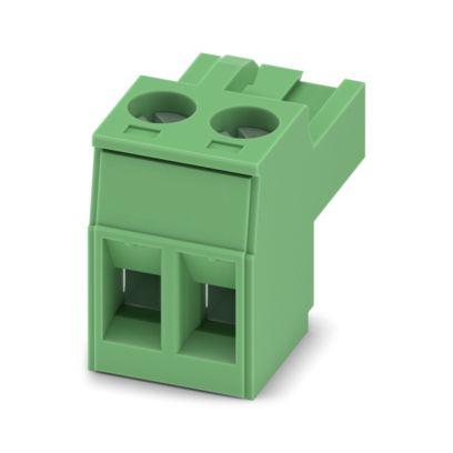 PCB connector, nominal cross section: 2.5 mm2, color: green, nominal current: 12 A, rated voltage (III/2): 320 V, contact surface: Tin, contact connection type: Socket, number of potentials: 2, number of rows: 1, number of positions: 2, number of connections: 2, product range: MSTBT 2,5/..-ST, pitch: 5.08 mm, connection method: Screw connection with tension sleeve, screw head form: L Slotted, conductor/PCB connection direction: 0 °, locking clip: - Locking clip, plug-in system: COMBICON MSTB 2,5, locking: without, mounting: without, type of packaging: packed in cardboard