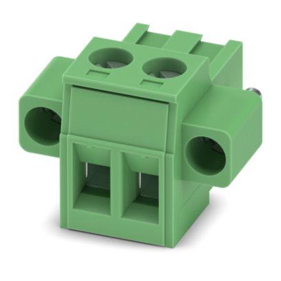 PCB connector, nominal cross section: 2.5 mm2, color: green, nominal current: 12 A, rated voltage (III/2): 320 V, contact surface: Tin, contact connection type: Socket, number of potentials: 2, number of rows: 1, number of positions: 2, number of connections: 2, product range: MSTBT 2,5/..-STF, pitch: 5.08 mm, connection method: Screw connection with tension sleeve, screw head form: L Slotted, conductor/PCB connection direction: 0 °, locking clip: - without locking clip, plug-in system: COMBICON MSTB 2,5, locking: Screw locking mechanism, mounting: Screw flange, type of packaging: packed in cardboard