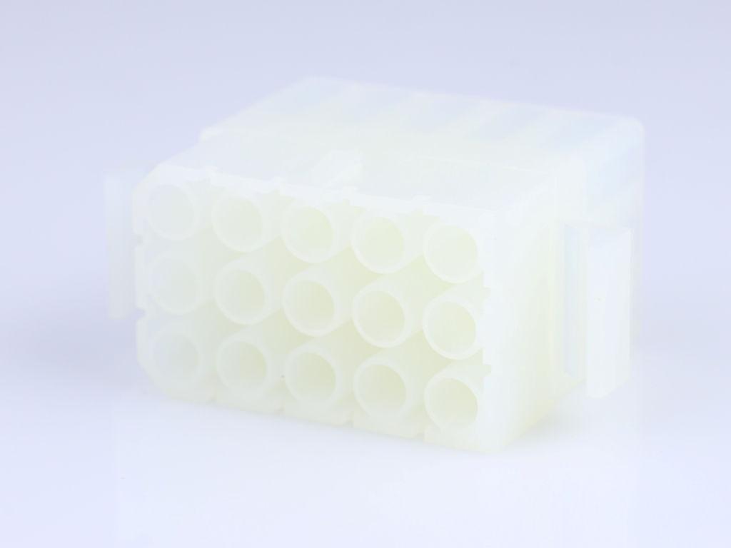 2.36mm Diameter, .093" Pin and Socket Receptacle Housing with Positive Latch, 15 Circuits, 3 Rows, with Standard Mounting Ears